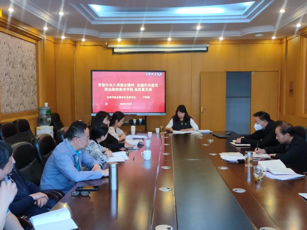 2025年4月25日,昆明学院直属单位党委书记严春梅以《贯彻中央八项规定精神、加强作风建设、推动继续教育学院高质量发展》为题,为继续教育学院党支部讲授专题党课,并开展党建专题调研。继续教育学院党支部全体党员参加学习。